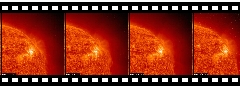 Zoom-in on acive region with loops and X-flare. EIT 195A (Nov., 1997)