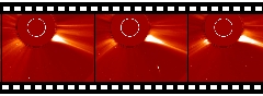 Sungrazing comet plunging towards the Sun. LASCO C2. (Apr. 30, 1998)