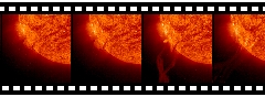 Streaming plasma slides above the surface of the Sun, in EIT 304 (March 18, 1997)