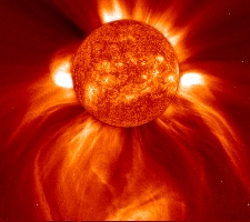 was turned 90 degrees so that the blast seems to be pointing down. An EIT 304 Angstrom image from a