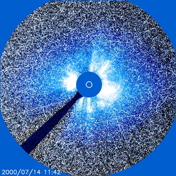 The "Bastille Day" particle storm and Earth-directed CME as seen by LASCO C3.