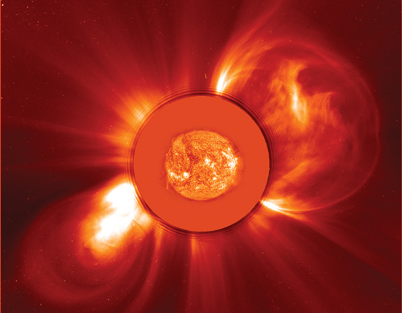 An impressive double set of CMEs observed by LASCO C2, with an EIT 304 Å inset in the middle.