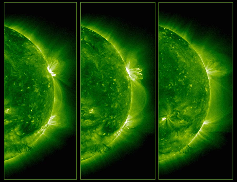This EIT 195 Å series shows evolving loops stretched out above the edge of the Sun.