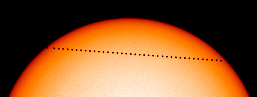 This MDI composite shows the passage of Mercury across the solar disk during the transit on 7 May 2003.
