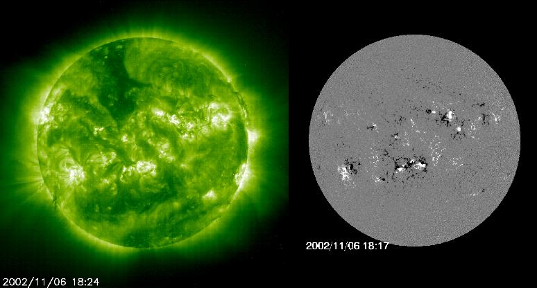 A comparison of the Sun on 6 November 2002, in extreme ultraviolet
