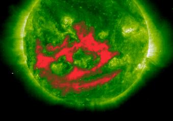 Be prepared to be surprised! The solar wind from these holes may help to excite the aurora in the Earth's ionosphere. Coronal holes, which appear as darker areas in SOHO's ultraviolet imagers, are a source of the higher speed solar wind. The magnetic field in coronal holes opens outward, allowing electrically charged particles to escape and be accelerated by the solar wind. Elsewhere in the Sun's outer atmosphere, the magnetic field curves back toward the surface and traps nearly all charged particles close to the Sun. The density and speed of the solar wind coming from coronal holes are significantly higher than in the solar wind originating over "closed" magnetic field regions. Please visit our Newsroom for press releases and media coverage.