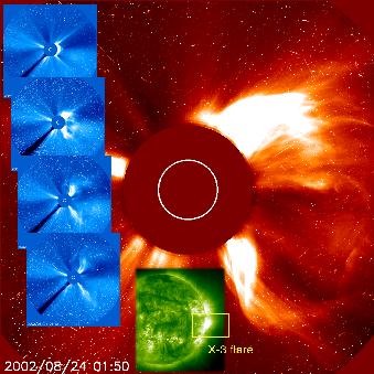 Early on August 24, 2002 a powerful X-3 flare erupted above the