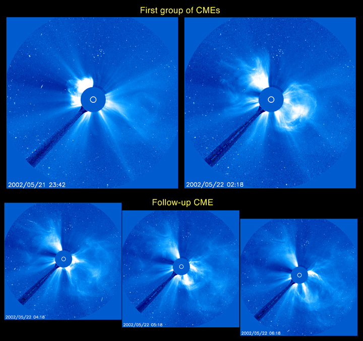 2002 shows a series of at least three separate coronal mass ejections