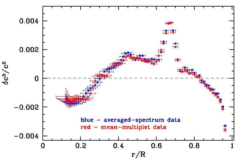 Fig. 10: Inversion results. Relative differences between the squared sound speed in the Sun and a