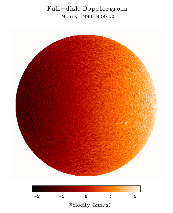 Full-disk Dopplergram obtained with MDI on 9 July 1996.